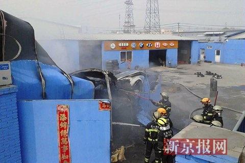 北京亦庄着火汽修店明火已扑灭 无人员伤亡(图)