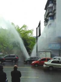 23日早上6点左右,“噗嗤”一声,一条十米多高的“水龙”,从内江市东兴区和平桥的一个破裂的水阀处冲天而起。正在睡梦中的一塑钢店老板杨大姐被楼下的说话声和水声惊醒,刚拉开窗帘准备看看情况,就被四溅的水珠给吓得赶紧拉上了窗帘。而满街喷射的水柱,也引来了许多车辆前来“洗”免费车。