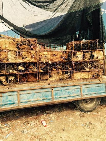 昨天(22号)晚上9点左右,在西安市汉城服务区,一辆拉载上百条狗的大货车,被西安爱狗人士截停。据了解,这车没有犬证和动检证明的狗原本要被运往河南屠宰场。