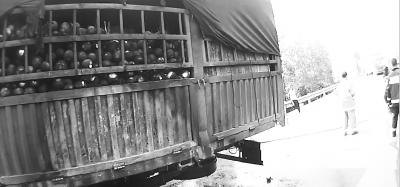 5月21日下午1点,二广高速荆州段,襄阳籍东风牌红色大货车,车辆后方的三个轮胎全都烧化,只剩下轮毂,车上遮盖货物的帆布也被烧出了一个大窟窿,而车上原本运输的一个个光滑亮白的香瓜瞬间变成了黑乎乎的煤球(见上图)。司机房师傅介绍,后方轮胎突然爆胎,引起自燃,他立即取下车上的灭火器灭火,可灭火器用完了,火依然未扑灭。