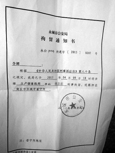 永城警方以涉嫌销售假药,将销售商刑拘。日前,检方做出不批捕决定 受访者提供