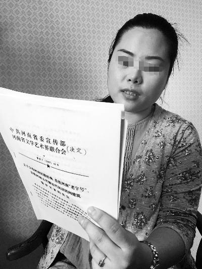 “聂麟郊膏药”传承人的家人向记者展示当地官方认定祖传膏药为“老字号”、非遗等的文书 摄/法制晚报记者 陈威