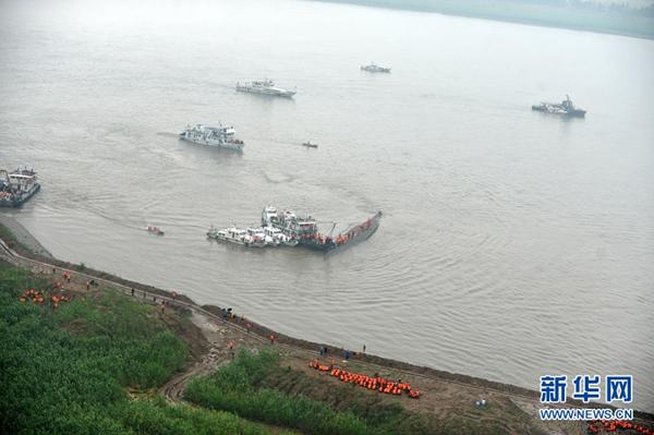 6月2日,空中拍摄的长江客船翻沉搜救现场。 新华社发(叶海涛 摄)