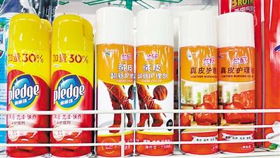 记者在超市找到类似封闭式罐装鞋油,实为真皮护理油、上色剂一类的物品。罐体是密封的,价格略高于膏体鞋油。
