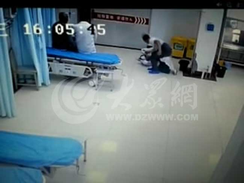 德州市人民医院伤人事件,一名男子正在伤害倒地的医生。(网友拍摄视频截图)