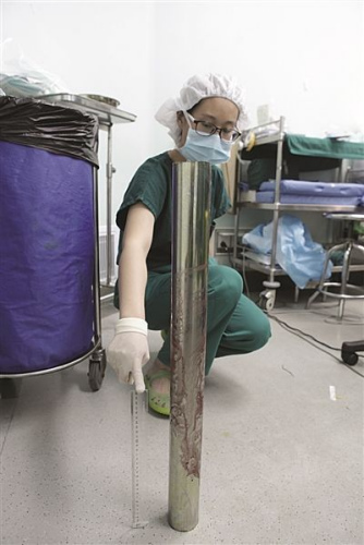昨天中午11点15分,一辆120救护车把身上插着钢管的伤者送向江苏省人民医院急诊科。直径6厘米的钢管,仍紧贴着患者的心脏。