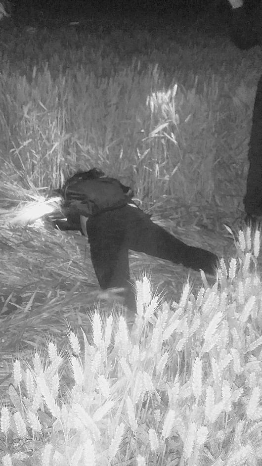 小雪被找到时,趴在一片麦地中,已陷入昏迷。(警方供图)