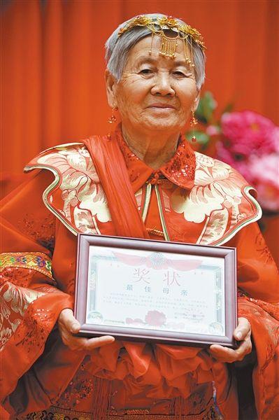 儿女们为张西兰颁发“最佳母亲”奖状,老人笑容满面。