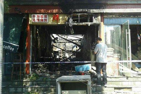 目击者反映,事发时间约在12时许,位于雍和宫大街上的一家面馆内突然弥漫出异味,此后店内突然蹿起2米多高的明火,冒出滚滚浓烟,黄褐色的烟雾弥漫了整条街。事发地附近的商铺老板称,火苗熏黑了屋顶。