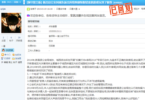 只因与网友争吵了几句,就被供出嫖娼的情节。绍兴新昌的齐先生在浙江在线民情巷论坛发帖称,当地派出所为完成抓嫖任务,对自己采取刑讯逼供等手段,导致自己有了“嫖娼”的污点。