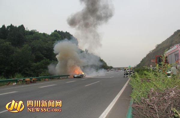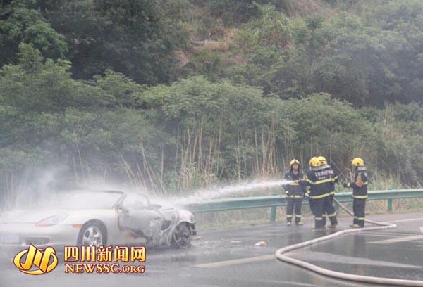 成简快速公路一保时捷跑车自燃 现场浓烟滚滚(图)