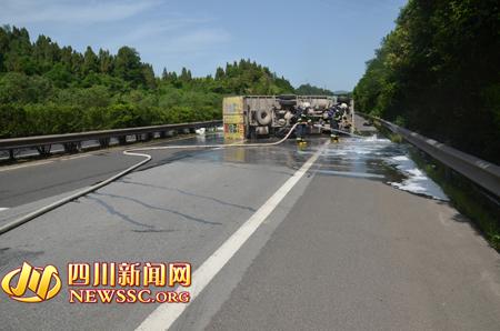 四川一高速路货车侧翻 胶水泄露致交通瘫痪(图)