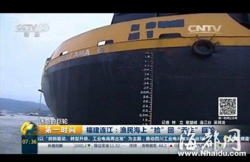 央视报道“海上捡巨轮”新闻(央视截屏图)