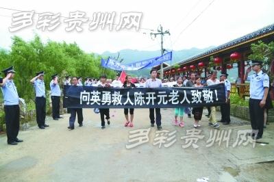 6月8日,在营救露营夜宿被困孤岛的6名游客时,贵定县公安局沿山镇派出所民警李光进被洪水冲走。当地六旬老人陈开元与其他5名村民奋不顾身施救,陈开元不幸遇难(本报曾连续报道)。昨日,老英雄陈开元的葬礼在贵定举行,当地干部群众数千人前往送行。
