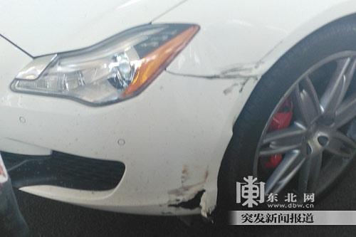 据了解,事故中,人力三轮车前轮变形,玛莎拉蒂轿车左侧车身多处刮伤。
