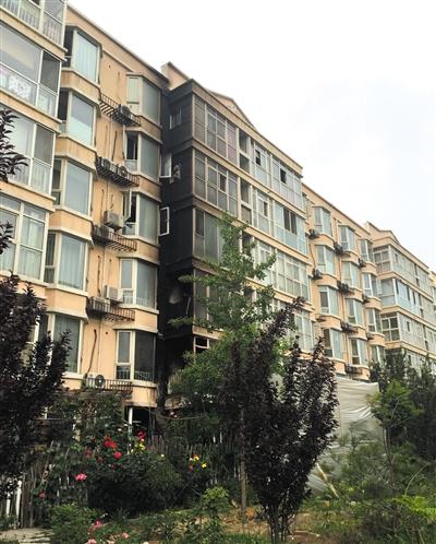 昌平区小汤山北京太阳城小区火灾现场。前日凌晨,该小区69号楼一层起火,导致6层一对60多岁的夫妻吸入一氧化碳中毒身亡。新京报记者 左燕燕 摄