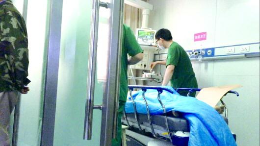 急诊室内,坠楼女子正在接受抢救。见习记者 王建伟 摄