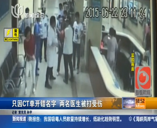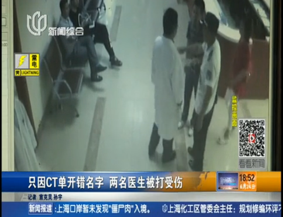 6月22日深夜,浦东新区人民医院的两名医生遭到了一名病人家属的殴打。而引发男子怒火的是一张开错名字的CT单。事发后警方随即介入调查。