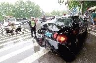 连撞4辆车,黑色别克逃逸2公里被堵