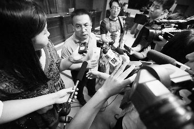 方舟子的律师在庭审结束后接受记者采访 摄/记者 曹博远