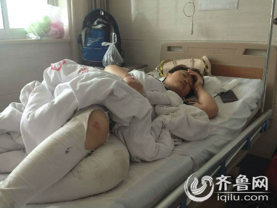 在此次事故中受伤的曹女士的表妹,目前病情相对稳定(记者 孔冠军 摄)