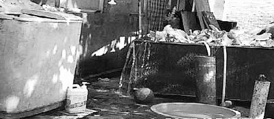 黑作坊内泡肉的池子周围脏乱 摄/法制晚报暗访组 记者 郭谦