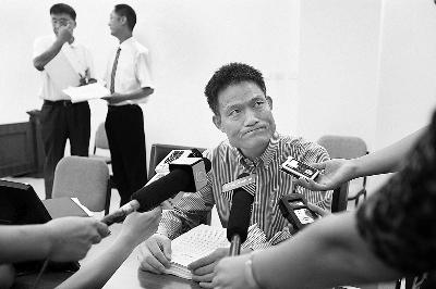 宣判结束后,原告方律师接受媒体采访 摄/法制晚报记者 黑克