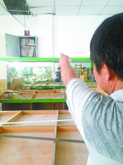 工友指着老柯触电的位置。 记者张全录 摄