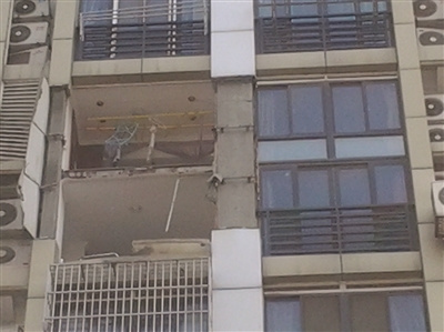 南京一公寓煤气爆炸2人重伤 阳台门窗被炸飞
