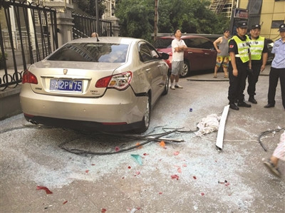 昨日上午7点多,南京晨报记者来到事发现场,尽管距离事发已经过去2个多小时了,但是公寓楼五楼一户居室内一股焦煳味还是扑面而来,阳台门窗全部炸飞十几米远坠落,窗户包括窗框都炸没了,墙面暴露在外。坠落的门窗砸坏楼下5辆车,地上到处散落着窗户玻璃碎片以及窗框的“残肢”。