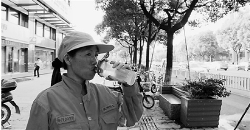 城市清洁工:长衣长裤“蒸桑拿” 靠喝水挺过夏季