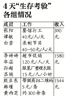 “他们认识了社会,自身也有所收获”,带队老师李新安表示,“生存训练”活动已经达到预期。