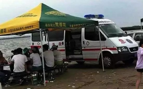 “以前听朋友说打电话叫救护车困难,可今天却看见开着救护车在河边大吃大喝,大家都知道救护车是救人的,怎么还能开出来‘大吃大喝’,开着救护车出来玩就是浪费有效资源。”王女士说:“当时急救车的门开着,车内还有一些急救设备,希望此事能引起相关部门重视。”