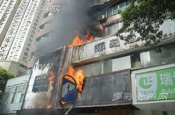 贵阳小十字广告牌起火 楼上婆婆报警叫起邻居撤离