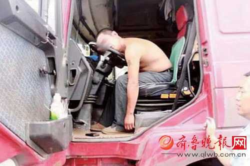 7月30日中午,二广高速山西段,一货车司机突然中暑,趴在方向盘上昏迷不醒。(央视)