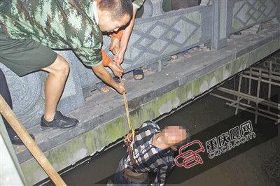 由于消防官兵到达现场时,已有一名好心市民从一旁的铁杆爬了下去。为了尽快把男子救上岸,一名消防官兵随即沿铁杆到达桥下,另外几名消防官兵则在上面放下绳子,将男子身体固定牢靠后,再合力将其拉了上岸。