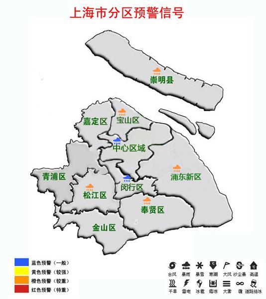 上海:24日13时更新暴雨橙色为暴雨蓝色预警信号