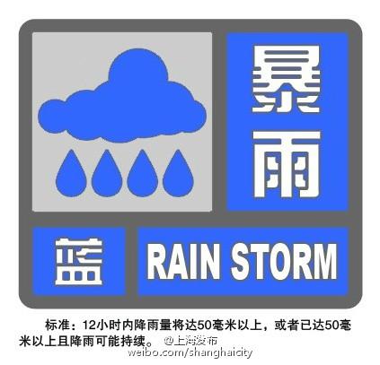 上海中心气象台2015年08月24日12时59分发布暴雨蓝色预警信号:由于影响本市的强降水云团已明显减弱,暴雨橙色预警信号更新为暴雨蓝色预警信号,但未来12小时内部分地区降水量仍可达50毫米左右,请加强防范。