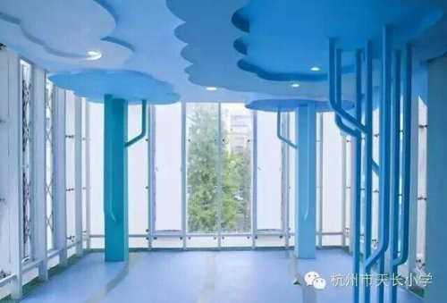 校区改建一直把环保作为重中之重,使用到的材料绝大多数是进口和最环保的材料。教学楼的墙面,用的是新型的环保材料生态树脂板,轻,透光性好,有丰富的颜色;教室天花板采用了吸音石膏板,没有回音,听课效果更好;教学楼还采用新风系统。