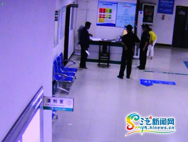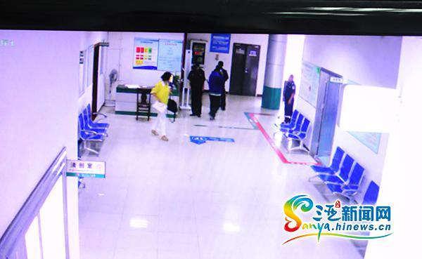 8月22日,从三亚市人民医院监控视频上拍摄的女患者跑出诊室的画面。(记者沙晓峰摄)