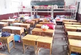 襄阳一小学师生宿舍急缺 教室前面摆课桌后面放床