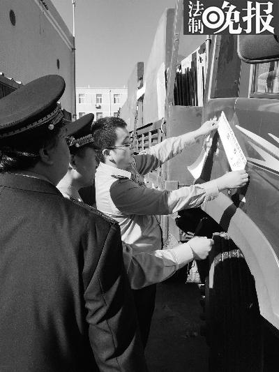 执法人员查封给青石斑鱼用麻醉药的“辽PD0540”货车