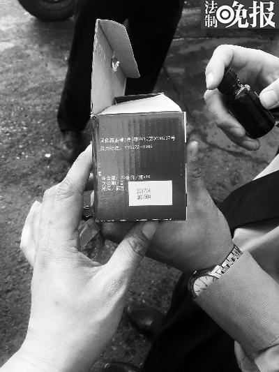 记者发现,该男子手中所持的褐色瓶子,在颜色、样式、标签等方面都与在园区南侧发现的“丁香油水门汀”瓶子一样。