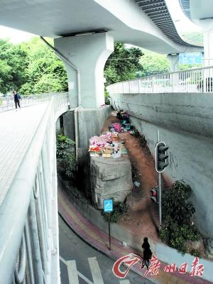 广州有人在内环路桥下4米桥墩台上筑巢居住(图)