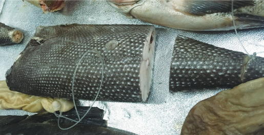但眼前这条大马哈鱼没有鱼头和尾鳍,不容易辨认,对此张先生解释,鱼送过来的时候就这样,“抓它(大马哈鱼)的时侯,它会一直撞,所以头基本上都撞坏了。”