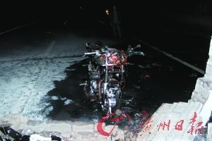 10月31日23时44分,消防部门赶到场后,受伤的摩托车驾驶员已被医务人员救出。伤者满脸是血,伤情比较严重。摩托车将公路上的一段隔离墙撞开一个缺口,路面散落一地的砖块。摩托车着火燃烧只剩下一个骨架,虽然明火已被扑灭,但还有零星火苗。救援人员见此情况,立即出一支水枪对摩托车余火进行扑灭和冷却。