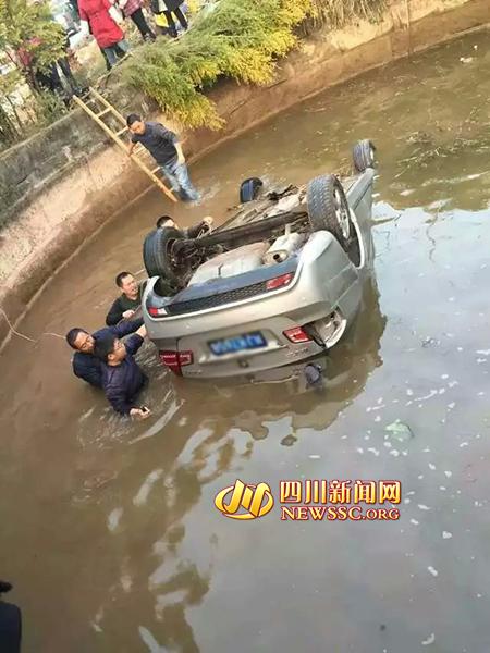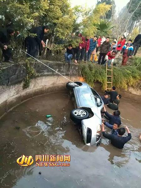 轿车坠入池塘村民下水营救不要报酬 司机跪谢