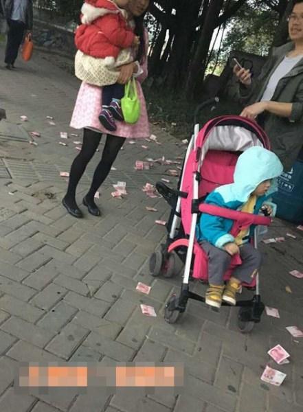 当时,路人并没有上前哄抢,反而纷纷帮忙捡起地上的钱。