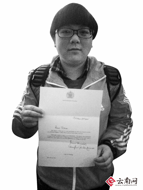 云南女生给英国女王写信 获女王亲笔签名回复