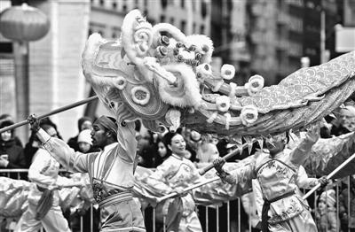 2月9日,纽约林肯中心为庆祝中国传统农历新年的到来,举行广场免费公众演出,全美舞蹈协会和纽约华人舞蹈团表演富有中国传统特色的舞狮舞龙。
